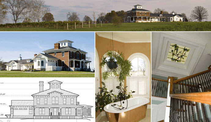 An large Italianate residence and small winery in the pastoral setting of a new vineyard. This home was the realization of the retirement dreams of a busy professional couple. The home helped them to return to his rural roots, in a home-style reminiscent of her past. |